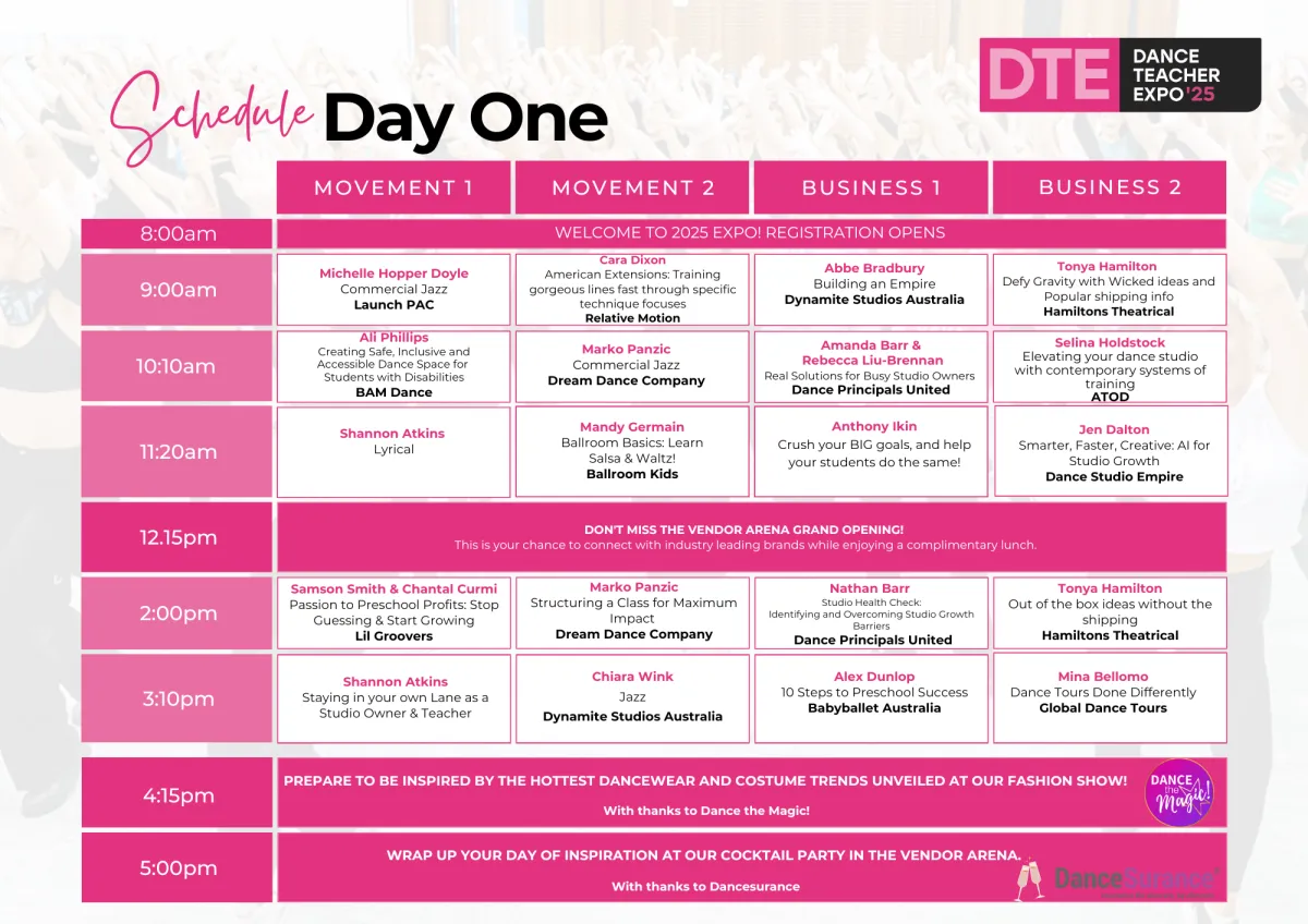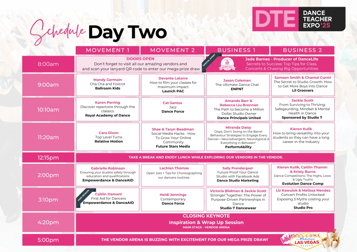 The Dance Teacher Expo 2026 schedule will be released closer to the event.